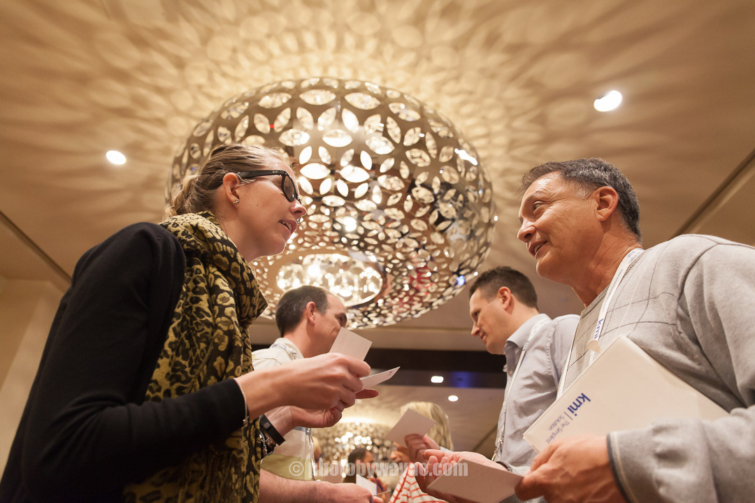 After an evening of socializing, the conference started early in the next morning. As an experienced photographer, I pride myself on being candid and invisible. After all, I do not wish to distract the audience from paying attention to the speaker on the podium. At the same time, I am able to find ways to capture the event according to the client's specification. I do so by anticipating where action is going occur and blending myself into the event. When people knew they were being photograph, they often look stiff. By blending into the crowd, I was able to catch the speaker acting naturally.
